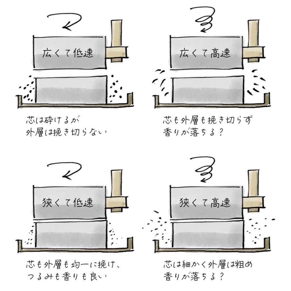 見聞きして同じようにしてみても、同じ粉は挽けないという、職人さんの腕が光る部分ですね!