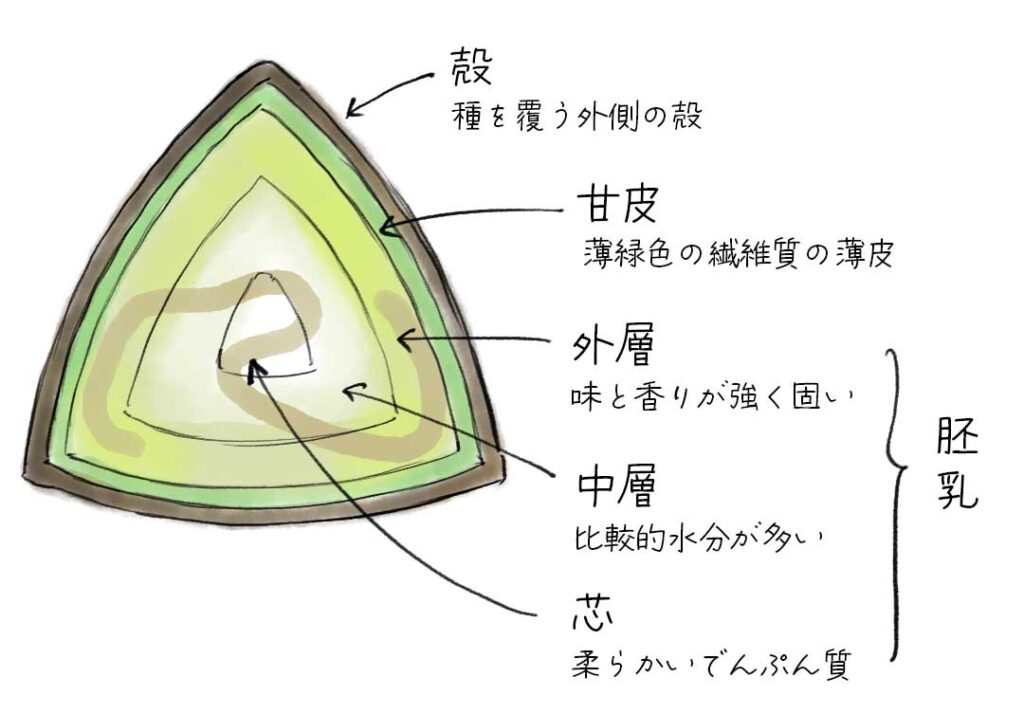 まずは、1粒のソバを解剖してみましょう。